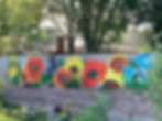 To make the painting experience fun, I listened to my favorite podcasts, had water handy in a cooler, and wore my hat plus plastic gloves to protect my nails, applied sunscreen and lots of bug spray. At the left in the photo above, is the remnants of a Crepe Myrtle tree that we cut down to this stub. I like how it ‘softens’ the mural…and will definitely try to get some plants going in front and the sides of it. On my list are: Russian Sage (at either end, as will grow quite tall), Cleome, and hopefully alot of Mint.