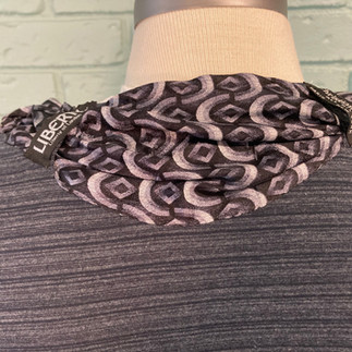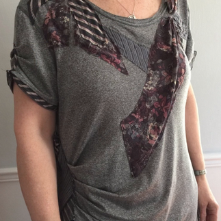 Sew..here's my final garment. This is one of those creative sewing projects that just kinda 'fell together'. Likely that happened because it is kinda like others I've done also using a man's 'silky' poly T-Shirt and silk tie(s).