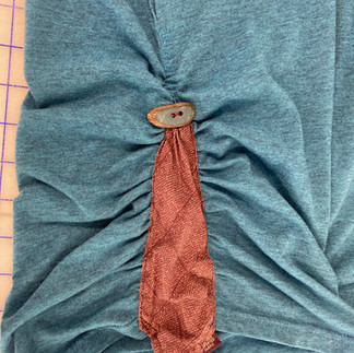 In the 3rd photo below, you can see that I actually tied a knot at the garment's left shoulder.