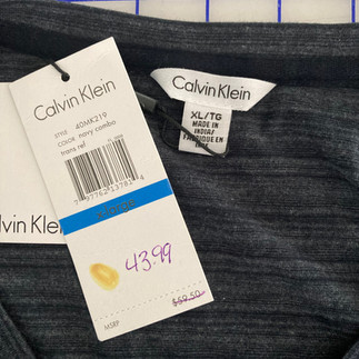 I'm an a roll to make garments flattering to larger-sized women to add to my 'Collection' available HERE, so I kept my Fabulous Fit dress form padded out. This Calvin Klein T is a 2XL size to start, marked down from $59.50 to $43.99 as you can see. I can ASSURE you that I didn't pay that for it - more likely $15 or less, as that's generally my 'gotta add that to my stash' purchasing limit.
